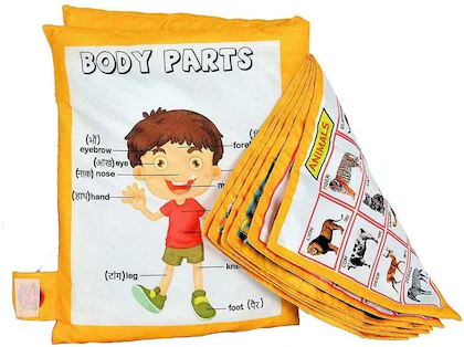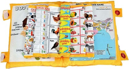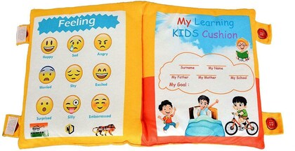 Learning Cotton Cushion Pillow Book for Kids Learn with 2 Languages – English and Hindi, Soft Cloth Book for Baby, Educational Toddler to 6 Month Up Baby